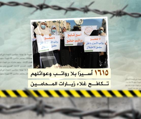 قطع الرواتب واستهداف الأسرى: أكثر من 1615 أسيراً فقدوا رواتبهم، ما ترك عائلاتهم في مواجهة صراع معيشي قاسٍ، خاصة مع غياب الزيارات العائلية وارتفاع تكلفة زيارات المحامين.