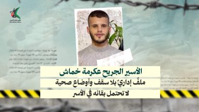 الأسير الجريح عكرمة خماش: ملفٌ إداريٌ بلا سقف وأوضاع صحية لا تحتمل بقائه في الأسر
