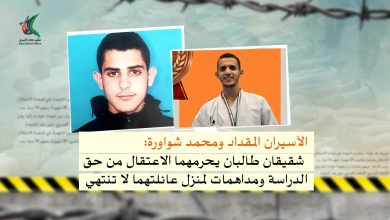 الأسيران المقداد ومحمد شواورة: شقيقان طالبان يحرمهما الاعتقال من حق الدراسة ومداهمات لا تنتهي