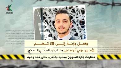 الأسير عزمي أبو هليل: طالب بحقه في العلاج فقابلت إدارة السجون مطلبه بالضرب حتى فقد وعيه