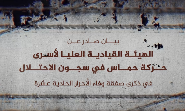 بيان صادر عن الهيئة القيادية العليا لأسرى حماس في الذكرى الحادية عشرة لصفقة وفاء الأحرار