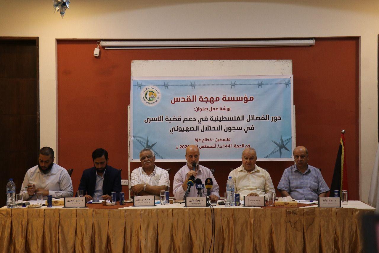 نظمت مؤسسة مهجة القدس للشهداء والأسرى والجرحى اليوم الأحد ٩/٨/٢٠٢٠ وبمشاركة مكتب إعلام الأسرى ممثلا بالأسير المحرر أ.أيمن الشراونة ورشة عمل حول دور الفصائل الفلسطينية في دعم قضية الأسرى في سجون الاحتلال.