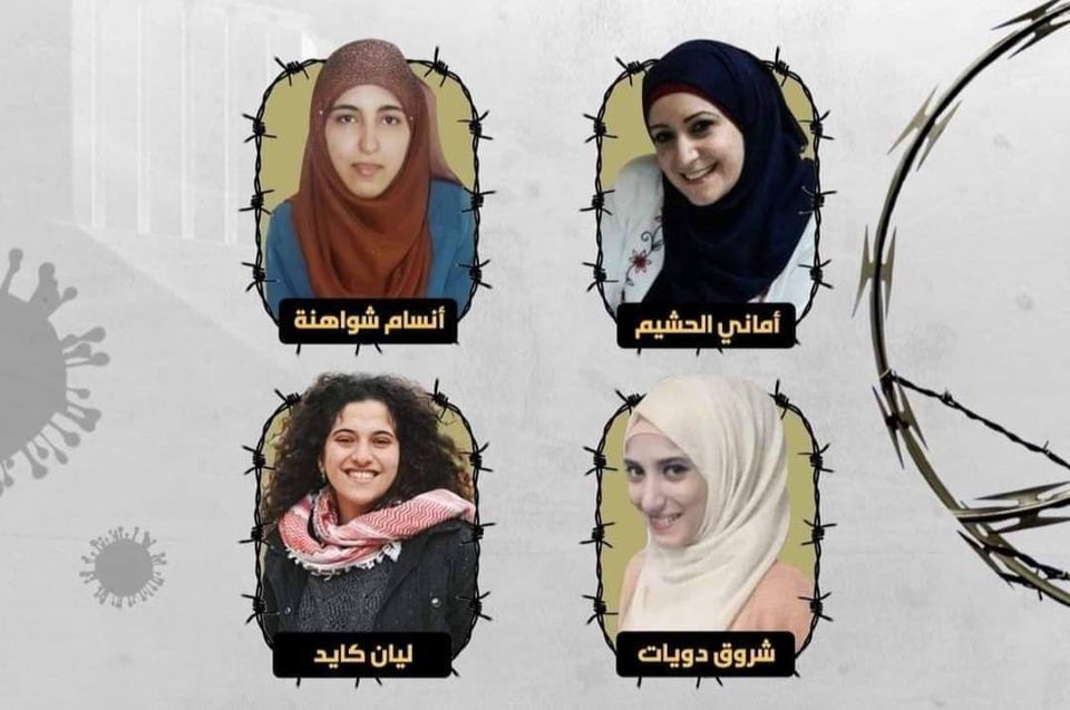وبين إعلام الأسرى ان الأسيرة أنسام شواهنة من قلقيلية ومحكومة بالسجن لمدة 5 أعوام، وأماني الحشيم من القدس ومحكومة بالسجن لمدة عشرة أعوام، وشروق دويات من القدس ومحكومة بالسّجن لـ (16) عاماً، في حين لا تزال الأسيرة ليان كايد وهى خريجة حديثاً من قسم علم الاجتماع في جامعة بيرزيتمن نابلس موقوفة منذ اعتقالها قبل 4 شهور .