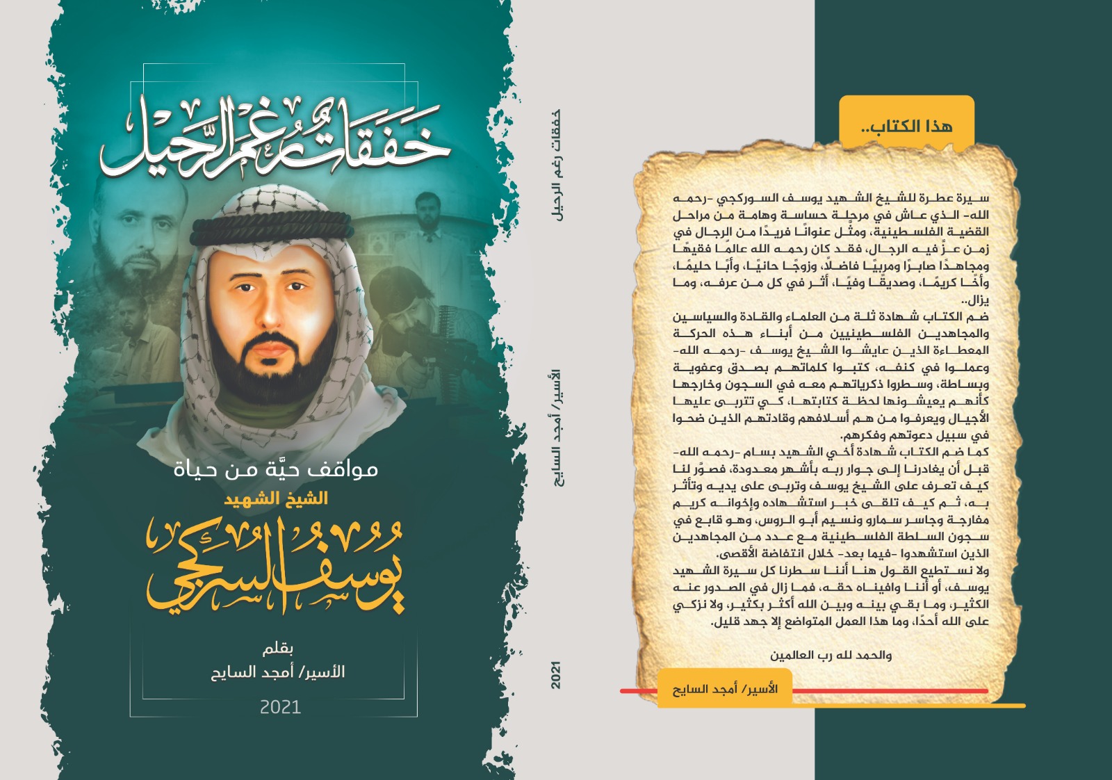 وأضاف “نحن اليوم بصدد اشهار كتاب جديد للأسير البطل أمجد السايح والذي يتحدث عن الشهيد يوسف ليبقى رمزاً وقدوة للأجيال القادمة”.