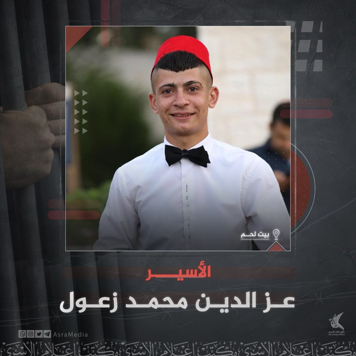 مددت محكمة الاحتلال العسكرية أمس اعتقال الأسير عز الدين محمد إسماعيل زعول (١٩ عاما) من بلدة حوسان غرب بيت لحم.