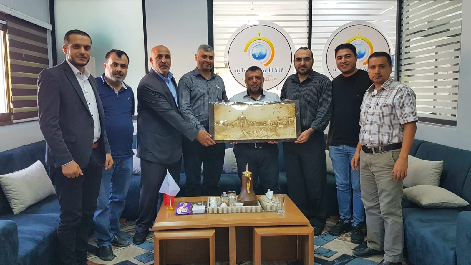 واستقبل وفد إعلام الأسرى في الفضائية مدير القناة أ. إبراهيم ظاهر، و أ.أحمد النمروطي عن العلاقات العامة، و أ.أحمد الخولي عن قسم البرامج، و أ.رامي العربي عن قسم الهندسة .
