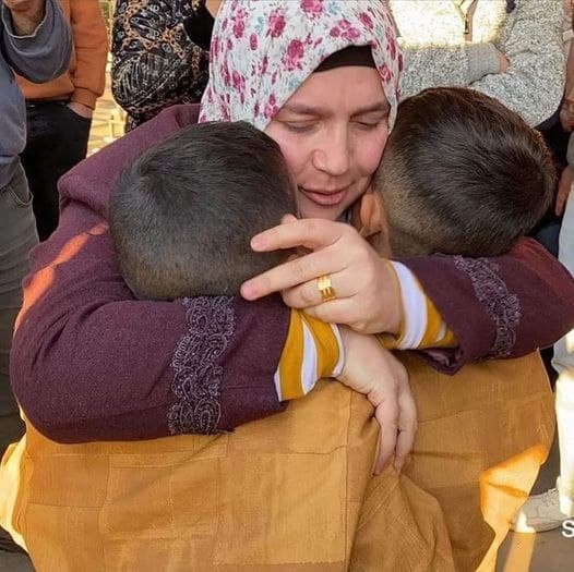 وأبدت سعادتها للقائها بعائلتها وطفليها، وأعربت عن أملها في أن تجتمع بزوجها الأسير وأبدت فخرها ببطولته، قائلة: “أعمارنا وأرواحنا في سبيل الله والوطن”.