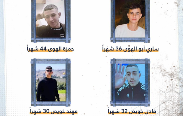 وقال مراسل مكتب إعلام الأسرى إن المحكمة المركزية الصهيونية في القدس المحتلة أصدرت أحكامها على الأسرى ساري أبو الهوى بالسجن الفعلي لمدة 44 شهرا وحمزة أبو الهوى لمدة 36 شهرا وفادي خويص لمدة 32 شهرا ومهند أبو الهوى لمدة 30 شهرا.