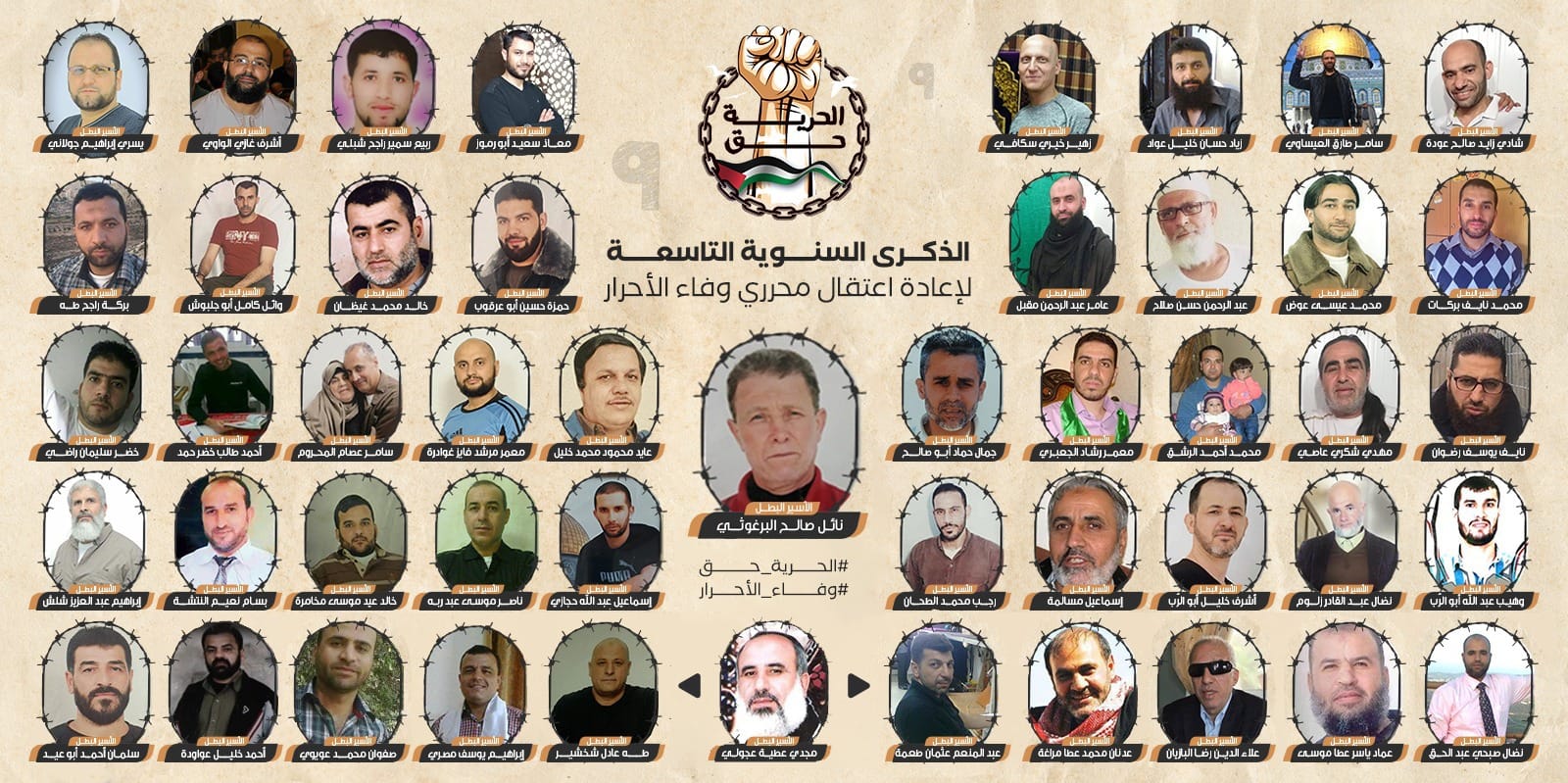 توافق اليوم الأحد 18/6/2023 الذكرى التاسعة لإعادة اعتقال العشرات من محرري صفقة وفاء الأحرار في الضفة والقدس المحتلتين على يد قوات الاحتلال الصهيوني.