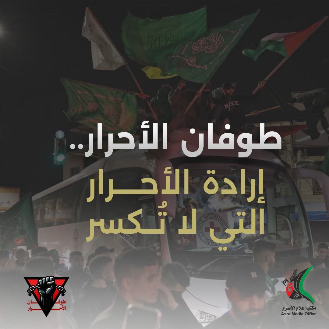 أكد الباحث رياض الأشقر، مدير مركز فلسطين لدراسات الأسرى، أن (35) أسيرًا من عمداء الأسرى من المقرر تحررهم اليوم ضمن الدفعة السادسة من المرحلة الأولى في صفقة طوفان الأحرار.