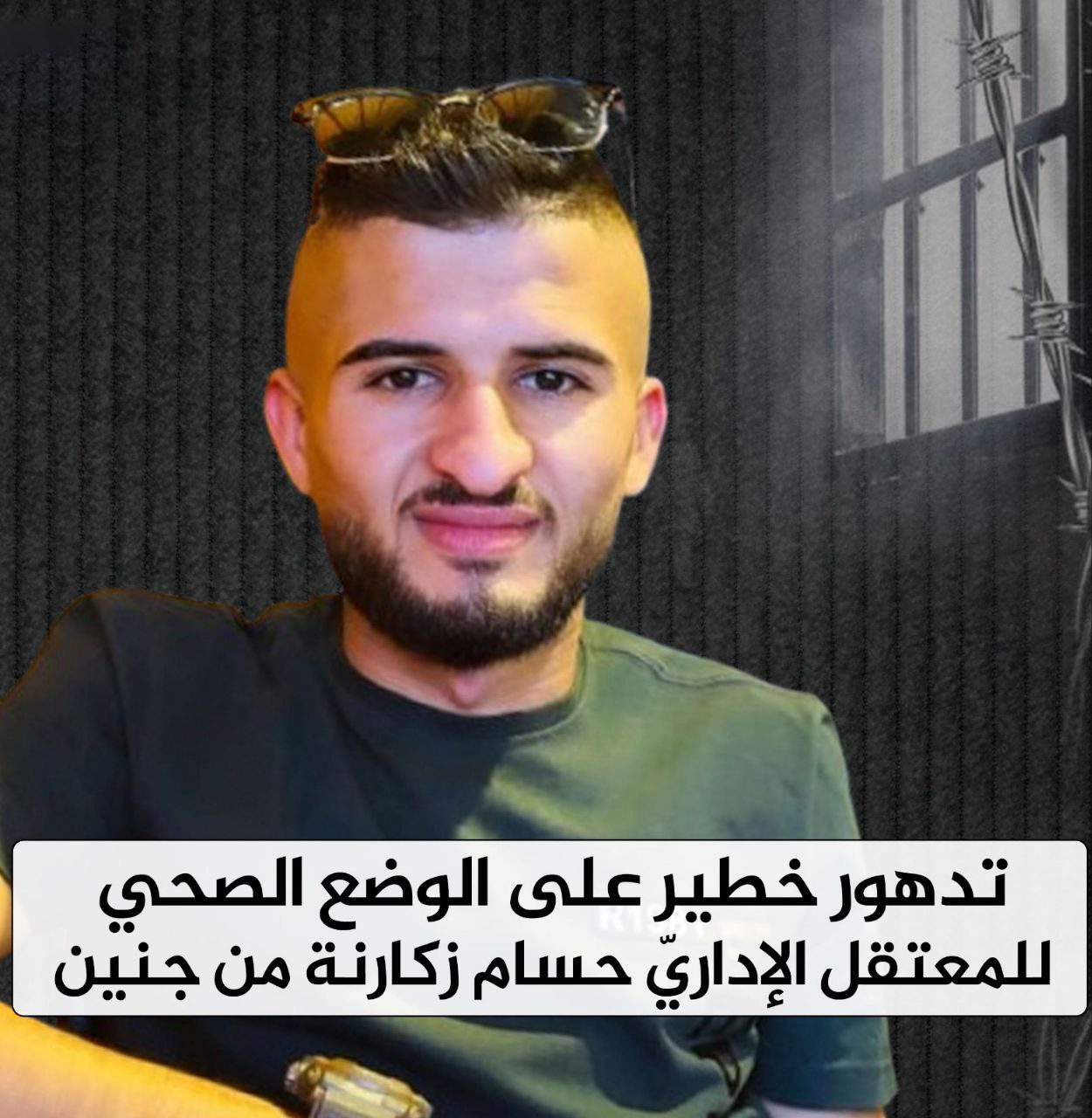 طرأ تدهور خطير على الوضع الصحي للمعتقل الإداري حسام نجي زكارنة (25 عاماً) من محافظة جنين، بعد إصابته بورم في المعدة، وفق ما أظهرته الفحوص الطبية التي أجريت له مؤخراً عقب نقله من سجن “مجدو” إلى مستشفى “العفولة”.