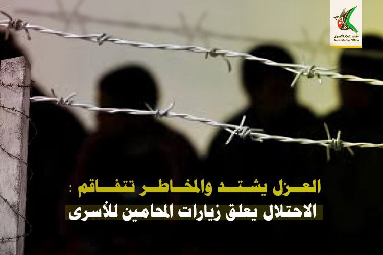 العزل يشتد والمخاطر تتفاقم : الاحتلال يعلق زيارات المحامين للأسرى