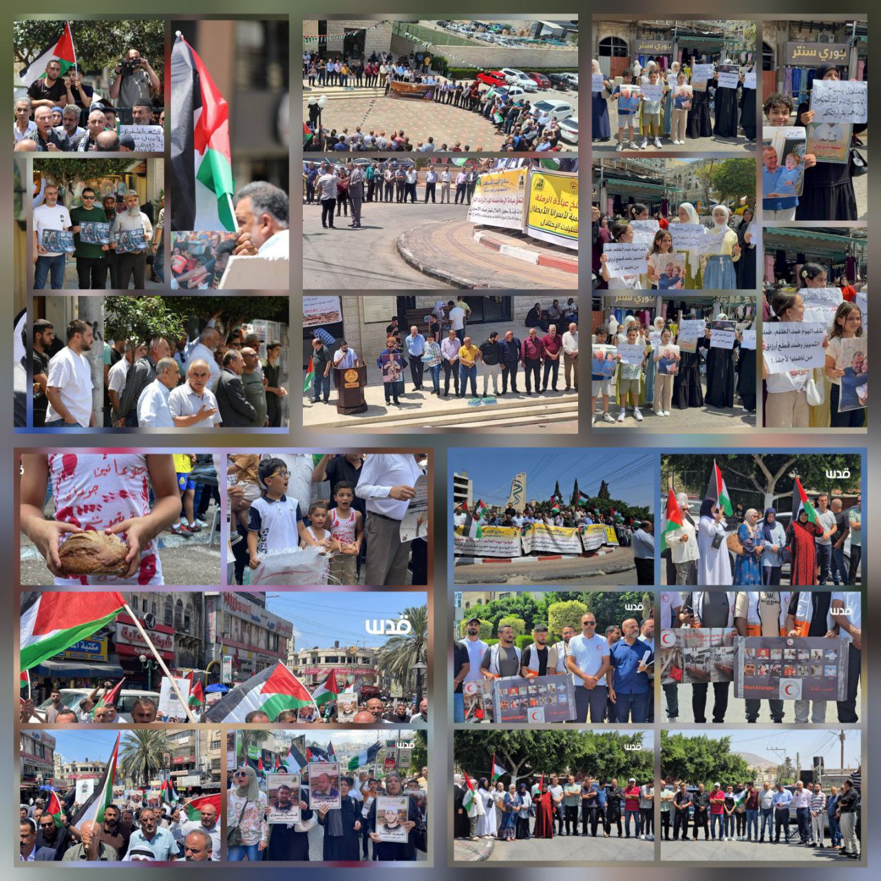 وشهدت مدينة نابلس مشاركة حاشدة امتدت عبر ميدان الشهداء، رُفعت خلالها يافطات تحمل صور الأسرى، وصوراً تعبيرية للتجويع في غزة. وندد المشاركون بالحرب الدموية التي تشهدها غزة، تزامناً مع ما وصفوه بـ”الحرب الصامتة” التي تفتك بأجساد الأسرى في سجون الاحتلال.