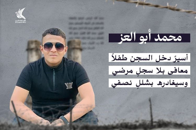 محمد أبو العز: أسيرٌ دخل السجن طفلاً معافى بلا سجلٍ مرضي وسيغادره بشللٍ نصفي