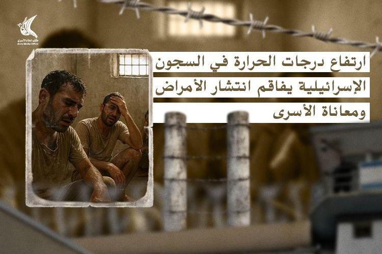 تشهد السجون الإسرائيلية في الآونة الأخيرة موجة غير مسبوقة من المعاناة الإنسانية مع ارتفاع درجات الحرارة إلى مستويات خانقة في ظل انعدام وسائل التهوية والتبريد والنقص الحاد في المياه وأدوات النظافة.