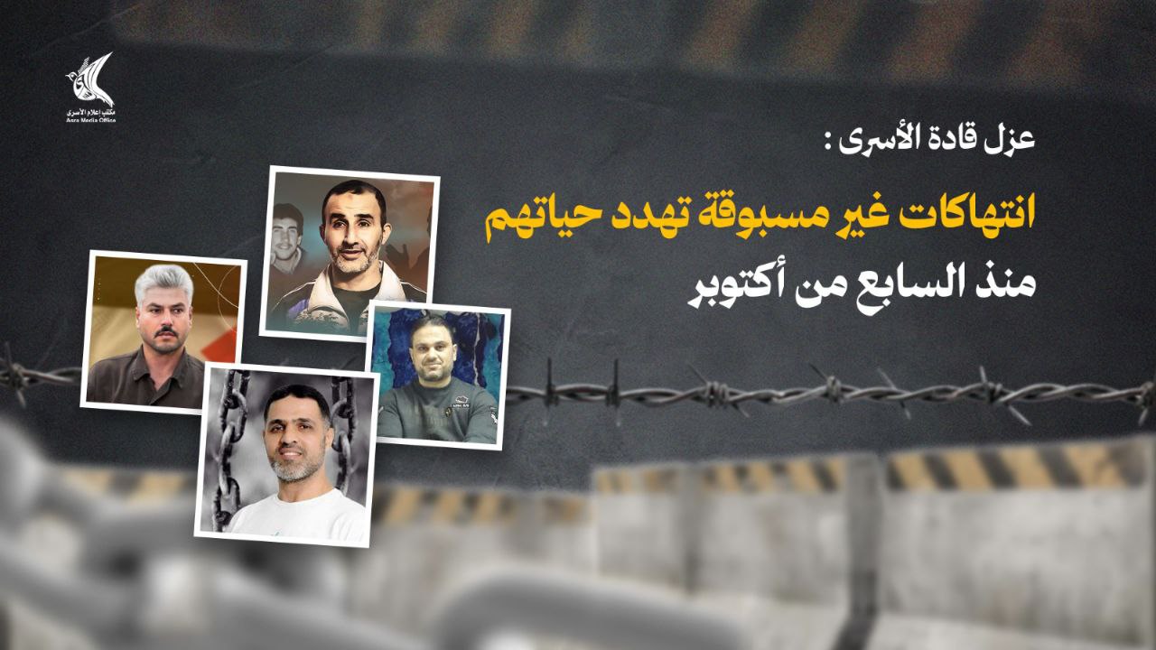 عزل قادة الأسرى : انتهاكات غير مسبوقة تهدد حياتهم منذ السابع من أكتوبر