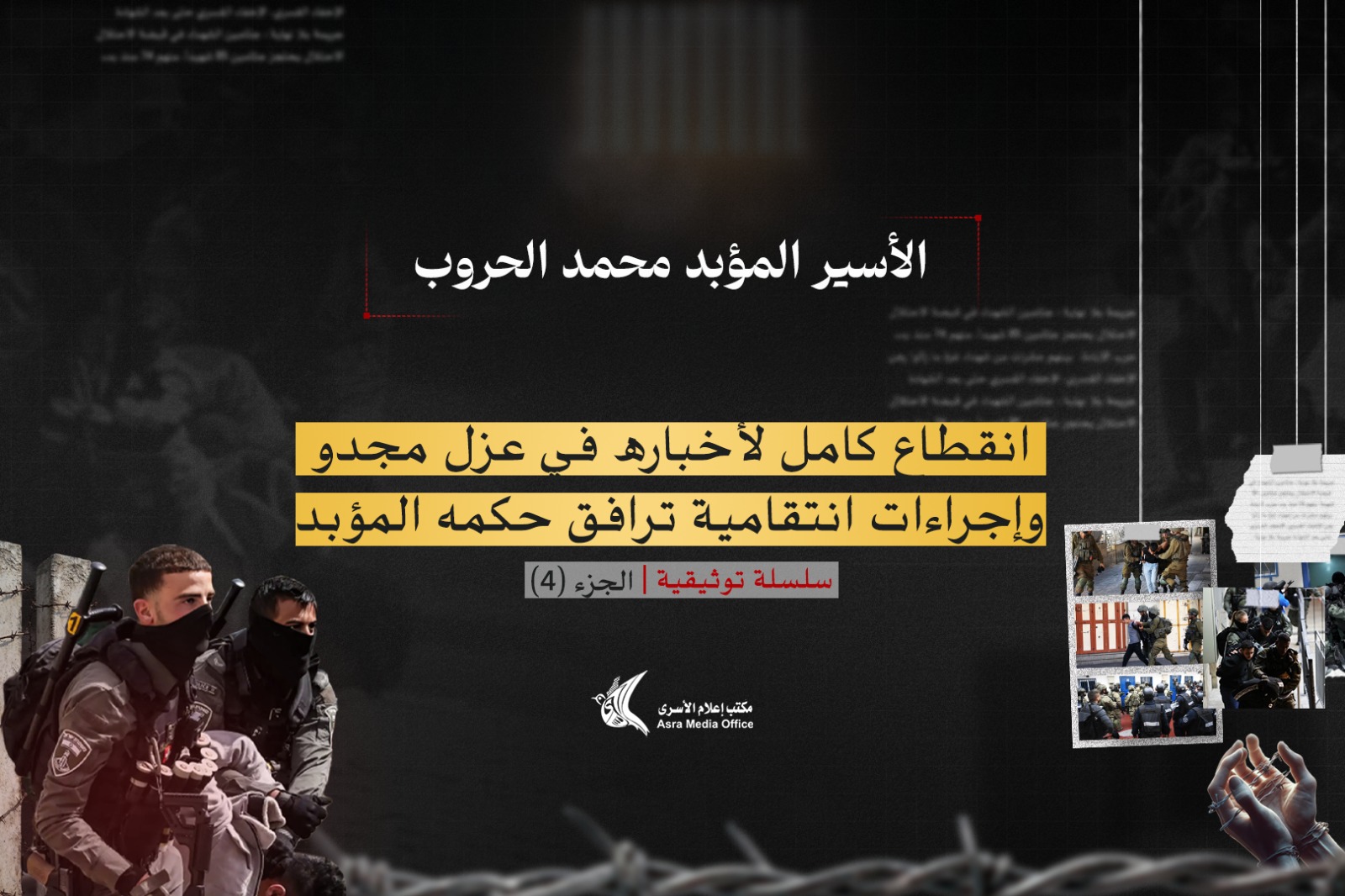 الأسير المؤبد محمد الحروب: انقطاع كامل لأخباره في عزل مجدو وإجراءات انتقامية ترافق حكمه المؤبد