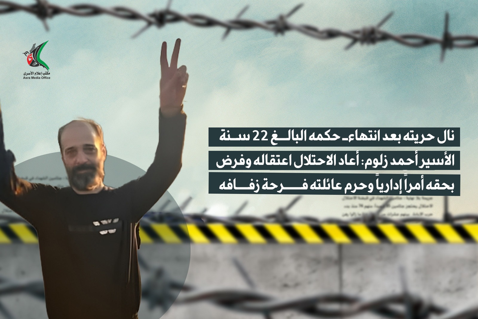 الأسير أحمد زلوم: أعاد الاحتلال اعتقاله وفرض بحقه أمراً إدارياً وحرم عائلته فرحة زفافه