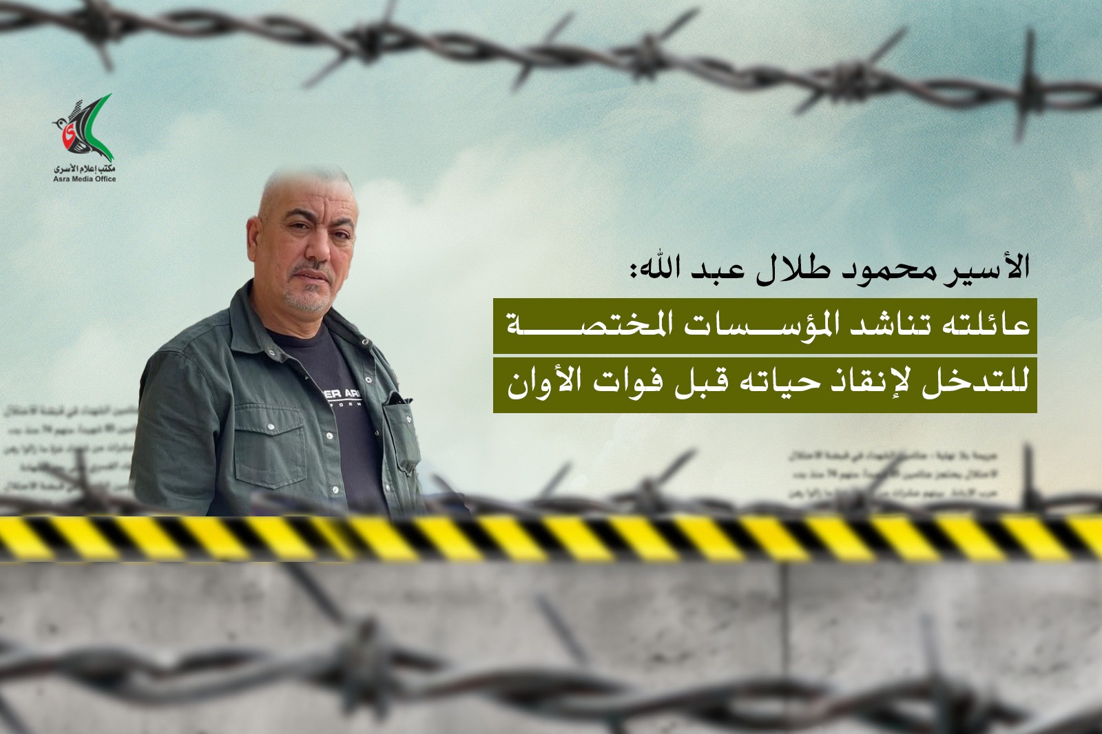 الأسير محمود عبد الله إنسان بعائلة صابرة تنتظر حريته، خدم وطنه لسنوات، شرطي متقاعد يحبه الجميع ويشهدون بدوره وأحقيته بالحياة كما هم أبناء شعبه، خدم بلاده وينتظر اليوم أن يقف أبناء شعبه إلى جانبه حتى يتلقى علاجه وينال حريته، في الوقت الذي لم يتم إبلاغ عائلته بتفاصيل اعتقاله وأسبابه، وتتأجل محاكمه بشكل مستمر دون معرفة ما ستؤول إليه الأمور مستقبلاً.