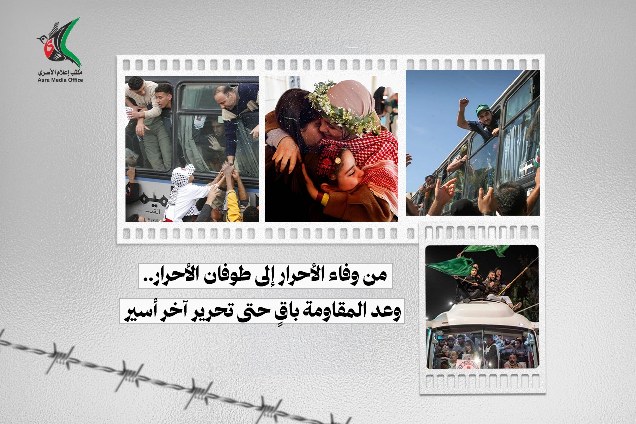 من وفاء الأحرار إلى طوفان الأحرار.. إعلام الأسرى: وعد المقاومة باقٍ حتى تحرير آخر أسير