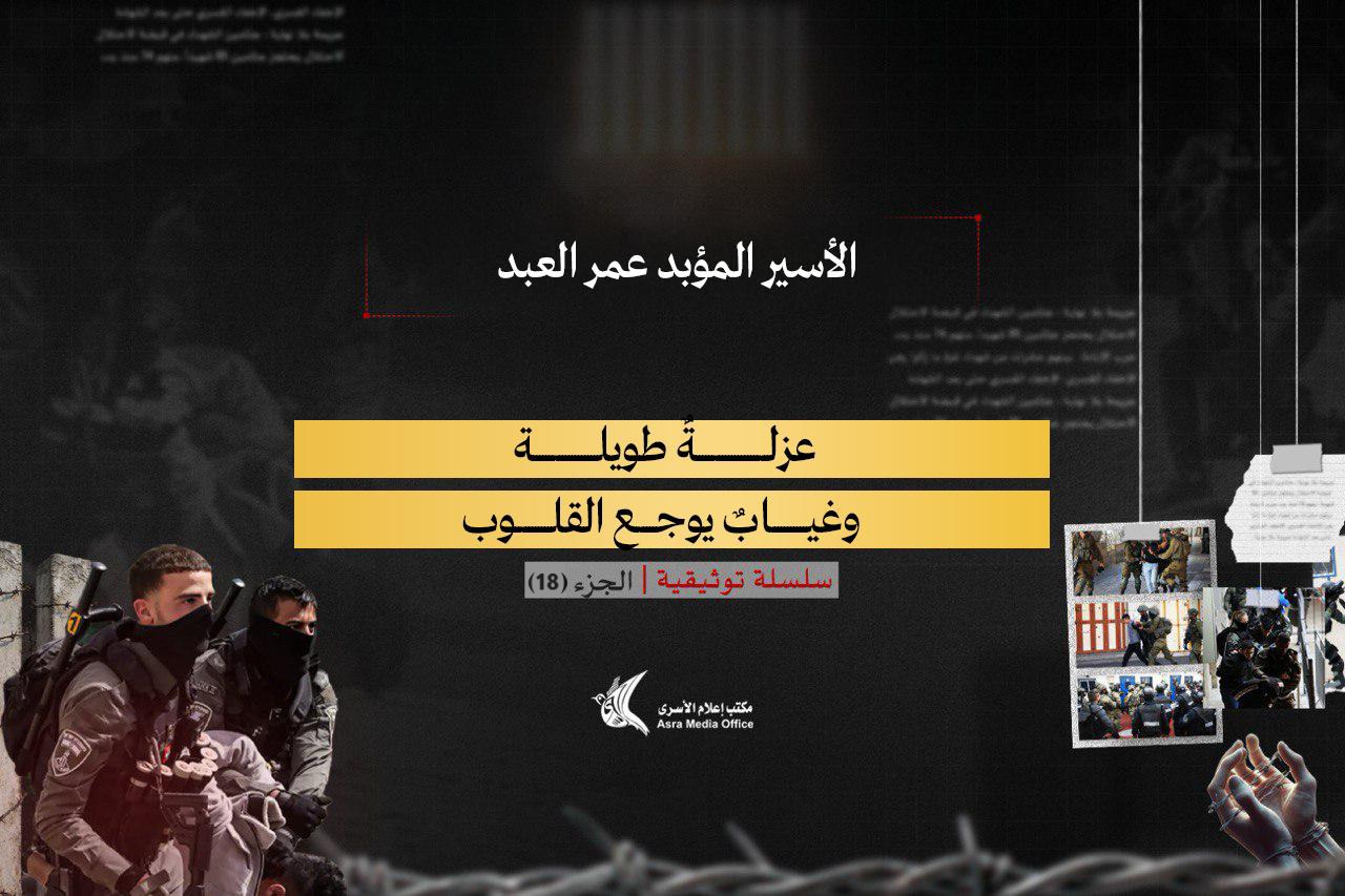 يقول مكتب إعلام الأسرى إنهم تواصلوا مع عائلة عمر العبد للوقوف على آخر أخباره ضمن سلسلةٍ تسلّط الضوء على معاناة أصحاب الأحكام العالية والمؤبدات الذين يواجهون ظروفًا قاسية في سجون الاحتلال.