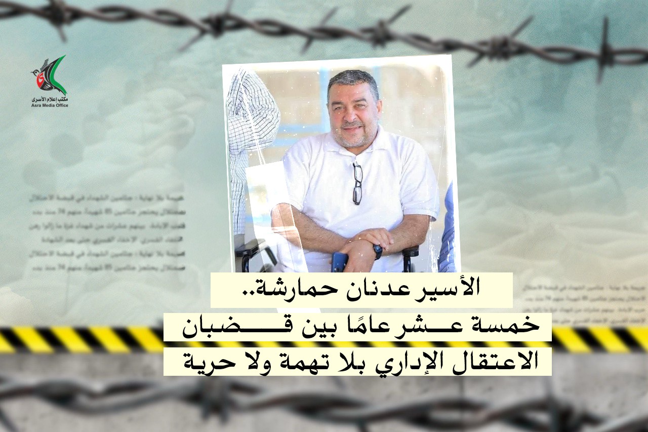 الأسير عدنان حمارشة.. خمسة عشر عامًا بين قضبان الاعتقال الإداري بلا تهمة ولا حرية