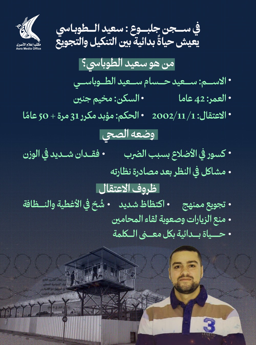 الرئيسية/معرض الصور/انفوجرافيك/في سجن جلبوع: سعيد الطوباسي يعيش حياة بدائية بين التنكيل والتجويع انفوجرافيكمعرض الصور في سجن جلبوع: سعيد الطوباسي يعيش حياة بدائية بين التنكيل والتجويع منذ 6 أيام 21 أقل من دقيقة منذ 6 أيام 21 أقل من دقيقة شاركها فيسبوك X لينكدإن Tumblr بينتيريست Reddit VKontakte Odnoklassniki Pocket مشاركة عبر البريد طباعة