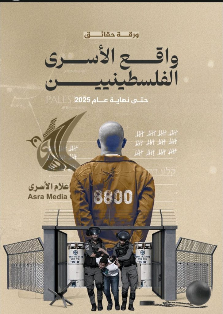 أصدر مكتب إعلام الأسرى ورقة حقائق شاملة توثق واقع الأسرى الفلسطينيين في سجون الاحتلال الإسرائيلي حتى نهاية عام 2025، كاشفًا من خلالها تصاعدًا غير مسبوق في أعداد المعتقلين والانتهاكات الجسيمة بحقهم في ظل منظومة قوانين وتشريعات عنصرية جعلت من الاعتقال والتعذيب سياسة ممنهجة ومفتوحة المدى.