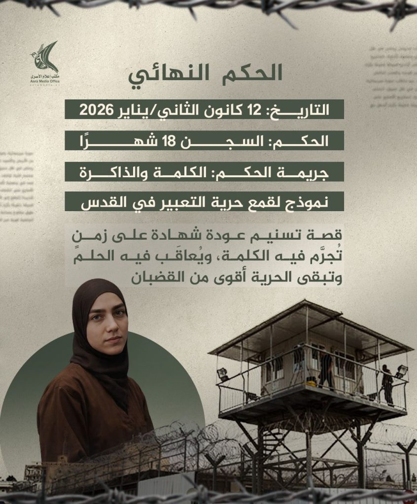 الرئيسية/معرض الصور/ألبومات/من قاعة الجامعة إلى سجن الدامون.. الطالبة المقدسية الأسيرة تسنيم عودة ألبوماتمعرض الصور من قاعة الجامعة إلى سجن الدامون.. الطالبة المقدسية الأسيرة تسنيم عودة منذ ساعتين 5 أقل من دقيقة منذ ساعتين 5 أقل من دقيقة شاركها فيسبوك X لينكدإن Tumblr بينتيريست Reddit VKontakte Odnoklassniki Pocket مشاركة عبر البريد طباعة