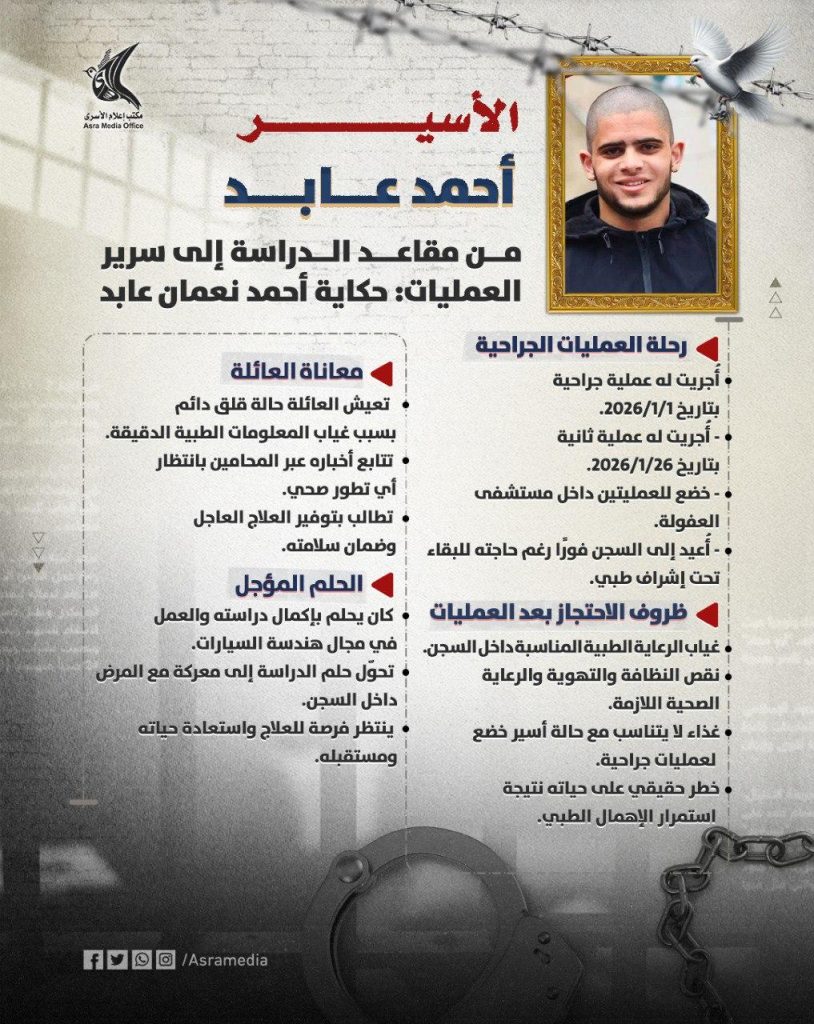 الرئيسية/معرض الصور/انفوجرافيك/الأسير أحمد عابد.. من مقاعد الدراسة إلى سرير العمليات انفوجرافيكمعرض الصور الأسير أحمد عابد.. من مقاعد الدراسة إلى سرير العمليات منذ 3 ساعات 5 أقل من دقيقة منذ 3 ساعات 5 أقل من دقيقة شاركها فيسبوك X لينكدإن Tumblr بينتيريست Reddit VKontakte Odnoklassniki Pocket مشاركة عبر البريد طباعة