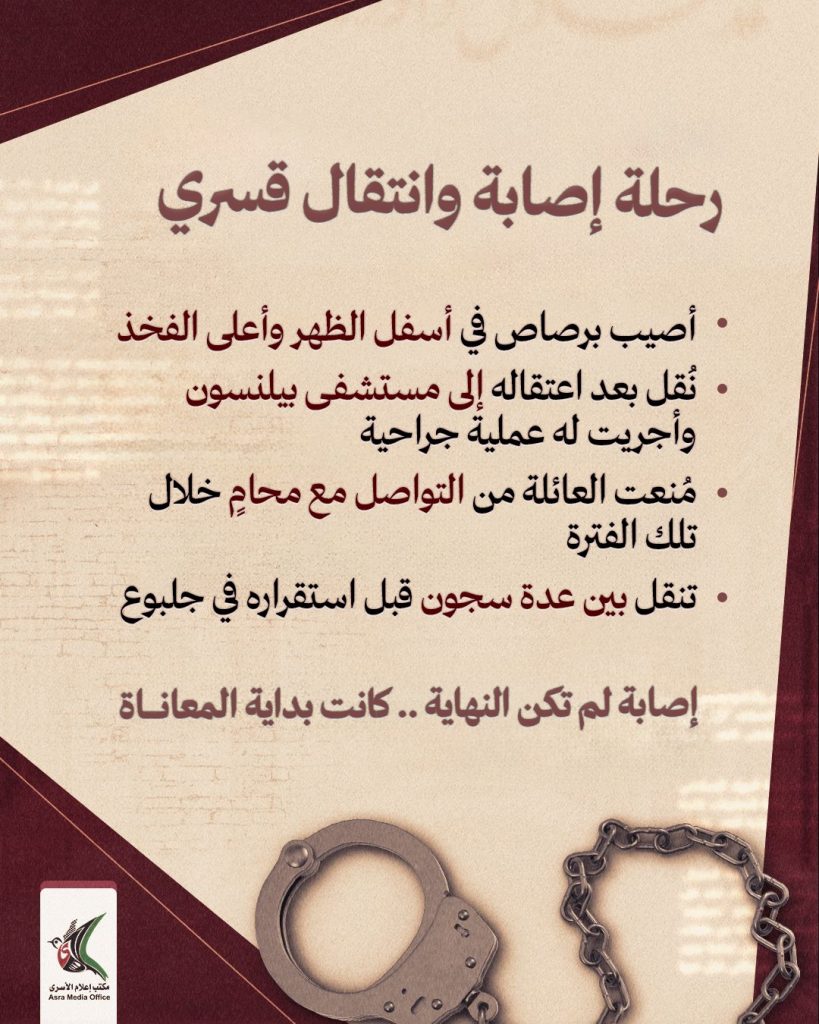 الرئيسية/معرض الصور/ألبومات/أسامة الطويل… مؤبدٌ يصارع الجوع والتنكيل داخل سجن جلبوع ألبوماتمعرض الصور أسامة الطويل… مؤبدٌ يصارع الجوع والتنكيل داخل سجن جلبوع منذ 10 ساعات 14 أقل من دقيقة منذ 10 ساعات 14 أقل من دقيقة شاركها فيسبوك X لينكدإن Tumblr بينتيريست Reddit VKontakte Odnoklassniki Pocket مشاركة عبر البريد طباعة