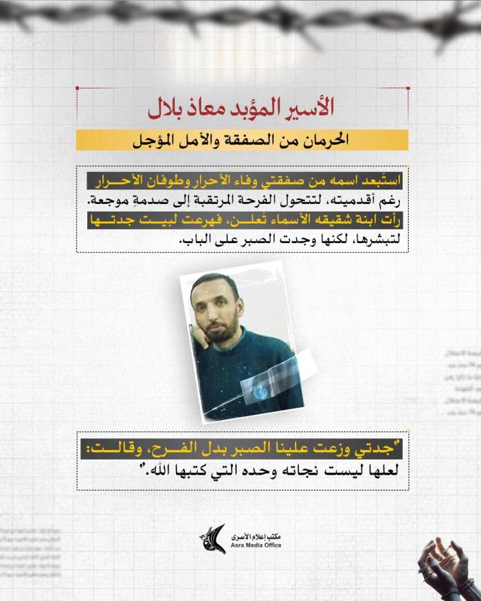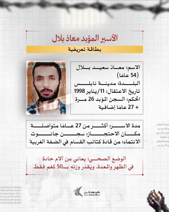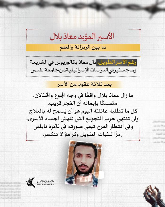 "الأسير المؤبد معاذ بلال.. ثلاثة عقودٍ من الصبر والكرامة"