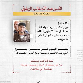 منذ ساعة إعلام الأسرى: الأسير القائد عبد الله البرغوثي يتعرض لاعتداءات وحشية مستمرة في سجن جلبوع قد تؤدي لاستشهاده في أي لحظة