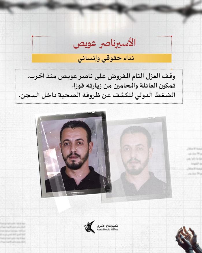 منذ 10 ساعات إعلام الأسرى: الأسير القائد عباس السيد تعرض لاعتداءات جسدية مباشرة وبدت عليه كدمات واضحة وعلامات زرقاء وهزال شديد