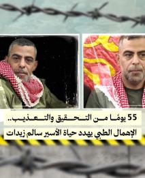 - منذ 6 ساعات إعلام الأسرى: "قضية الأسير سالم زيدات تعكس جانبا مظلما من سياسة الإهمال الطبي المتعمد التي يمارسها الاحتلال ضد الأسرى المرضى، وهي سياسة تهدف إلى إنهاك أجسادهم وكسر إرادتهم في انتهاك صارخ لكل القوانين والمواثيق الدولية".