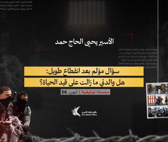 إعلام الأسرى: الأسير يحيى الحاج حمد (34 عاماً) من نابلس، والمحكوم بالسجن المؤبد مرتين و(30) عاماً إضافياً، يواجه أوضاعاً صحية ومعيشية صعبة في سجن ريمون.