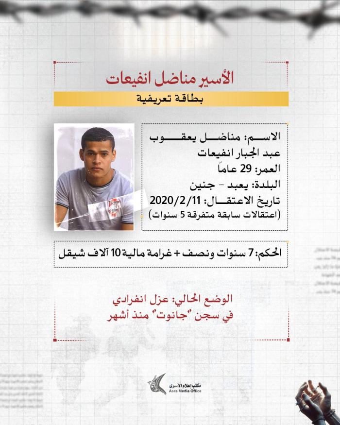 الأسير مناضل انفيعات عزل انفرادي ومعاناة صحية