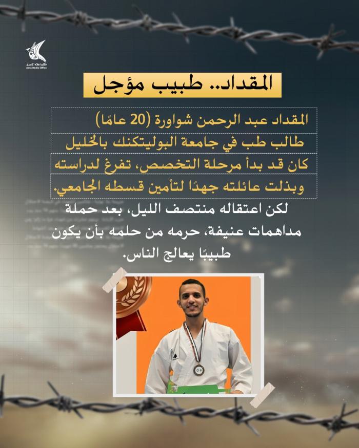 الأسيران الطالبان المقداد ومحمد شواورة.. قيدٌ يحاصر العلم والأحلام