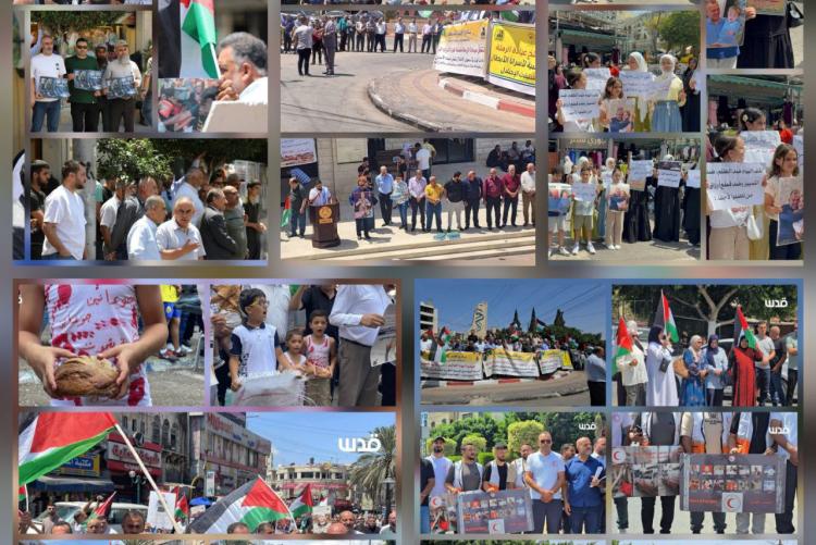 ففي مدينة جنين، انطلقت مسيرة تضامنية من منطقة السيباط، شارك فيها أهالي المدينة وعدد من الأسرى المحررين والقوى الوطنية والإسلامية، وأكدوا على رفض الإبادة الجماعية وسياسة التجويع الحاصلة في قطاع غزة، ولفتوا الأنظار إلى جرائم الحرب التي ترتكبها إدارة السجون بحق الحركة الأسيرة.
