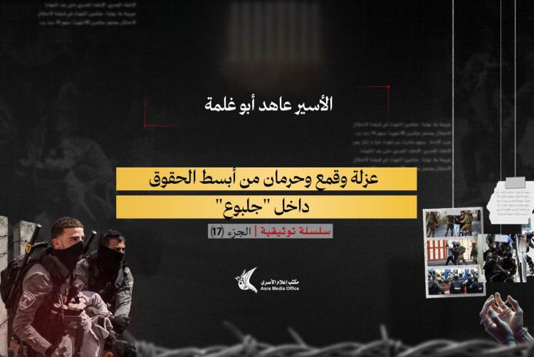 تعرض الأسير عاهد أبو غلمة، نظرًا لرمزيته، لاعتداءاتٍ وضربٍ ممنهج، ونُقل بين السجون مرارًا، وعانى من إهمالٍ طبي متعمّد ومن أمراضٍ عدّة. وأكدت زوجته أنه يعاني من نوبات الشقيقة التي تصيبه بين الحين والآخر، وهو مرض يحتاج صاحبه إلى بيئةٍ هادئة، وهو ما يفتقر إليه الأسرى في سجن جلبوع في ظل استمرار القمع.